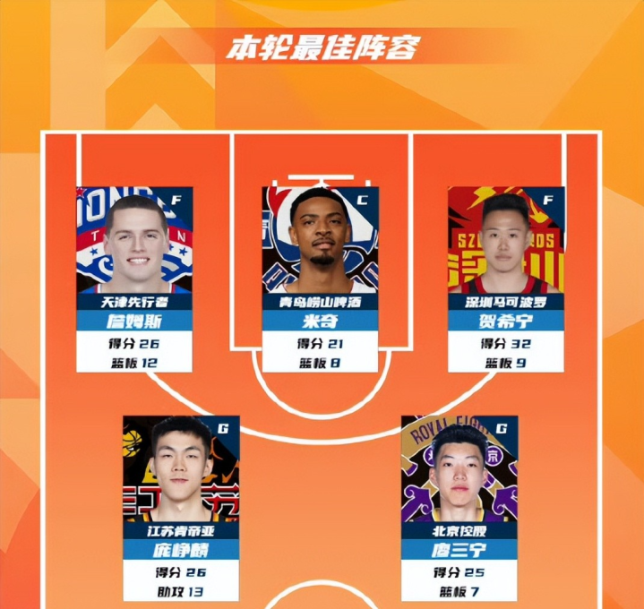 本轮CBA最佳阵容名单公布,两位广西籍国产球员成功入选:江苏队的庞峥麟砍下26分13次助攻的大号两双数据,廖三宁则贡献25分7次助攻,并且在关键时刻绝杀广东男篮,两人凭借出色表现携手入围。此外,天津队的詹姆斯、青岛队的米奇以及深圳队的贺希宁也一同入选本轮最佳阵容!
