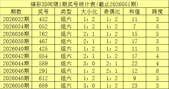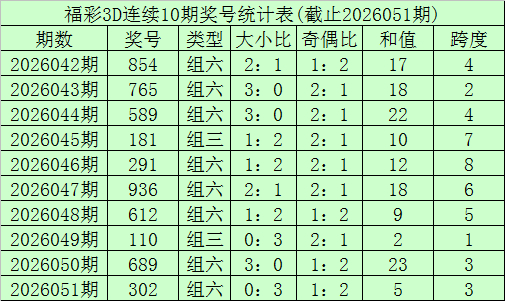 开奖总结:福利彩票3D第26051期奖号开出302。奖号类型为组六,奇偶阵势为奇偶偶,大小阵势为小小小。