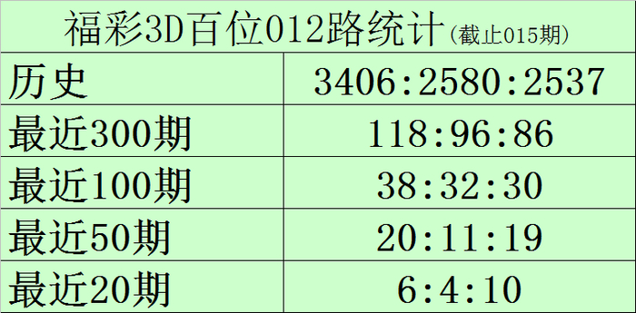 百位推荐:百位最近20期号码012路比为6:4:10,目前0路号码遗漏1期,1路号码遗漏10期,2路号码遗漏0期,另外0-9号码遗漏期数分别为: