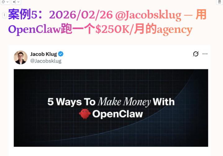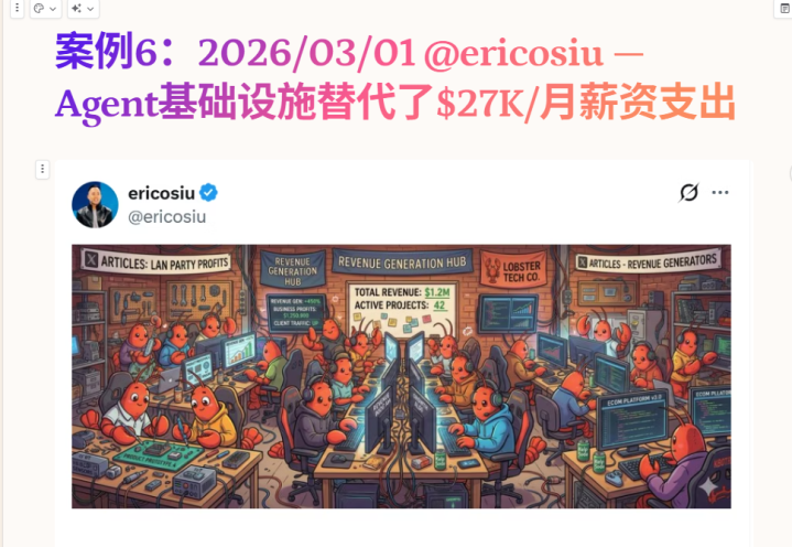 案例自身是一个东说念主帮客户部署multi-agent系统,开拓了邮件分拣、Slack监控、内容pipeline、CRM羡慕、汇报团员五个agent。收费15K装置费,月羡慕5K,给客户省$200K+/年东说念主力成本。一个月赚了25万好意思元。