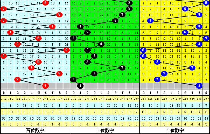 个位:近期质合号码出现比例基本持平,质数目前连续开出4期,本期放弃质数预计合数出现;另外,在最近20期奖号中,该位0路和2路号码表现非常活跃,占开奖总数的85.0%,本期继续关注0路或2路号码开出,关注号码8。