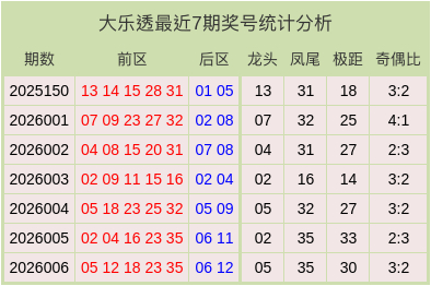 大乐透最近7期奖号和数据分析表