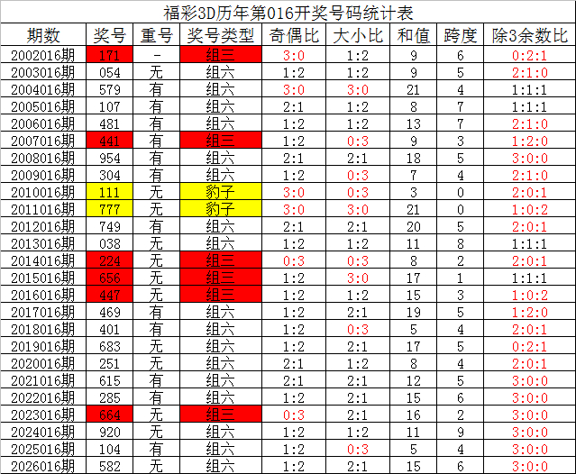 其中,组三号码开出4次,组六号码出现20次,上期奖号为组六号码,本期预计继续开出组六号码。