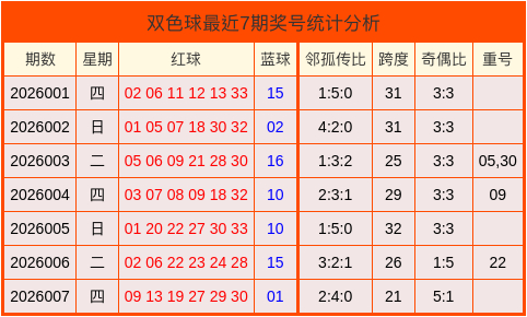 上期开奖数据中得知邻孤传比为2:4:0,奇偶比为5:1,无重号,跨度数据为21。